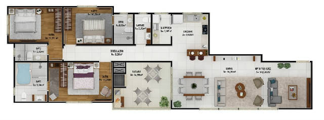 3 ou 4 suítes sendo 1 suíte master;